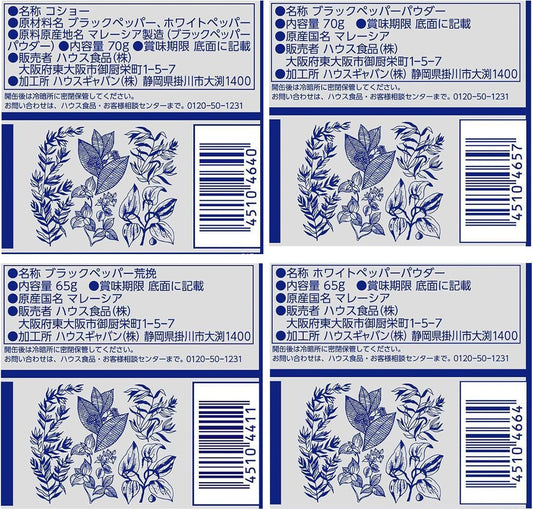 GABAN(갸반) 【스파이스 세트】 【하우스】 후추 캔 4종 세트 (후추/블랙페퍼/굵은 블랙페퍼/화이트페퍼)