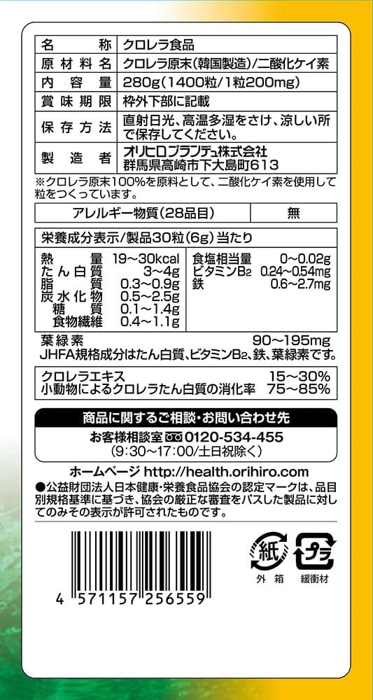 오리히로(ORIHIRO) 클로렐라 정제 1400정