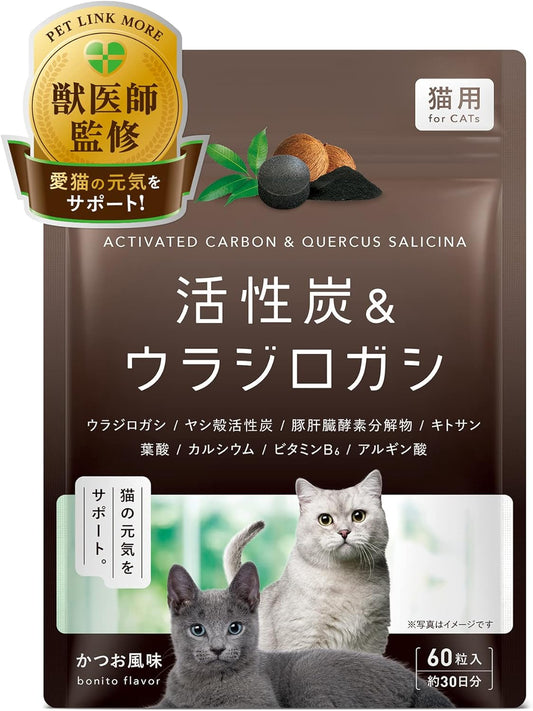 PETLINKMORE 활성탄 &우라지로가시 – 신장 건강 유지 고양이용 서플리먼트 (30일 분)