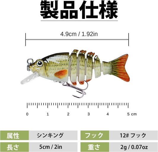 TRUSCEND 6관절 리얼 피쉬 루어 4개 세트 초보 입문용 미노우 낚시루어 B2-5cm,2g