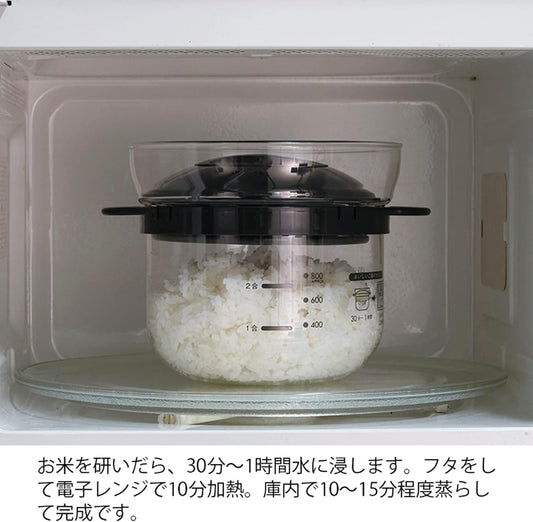 HARIO(하리오) 유리 전자레인지용 밥솥 1~2인용 블랙 (일본제, 선물용) XRCN-2-B