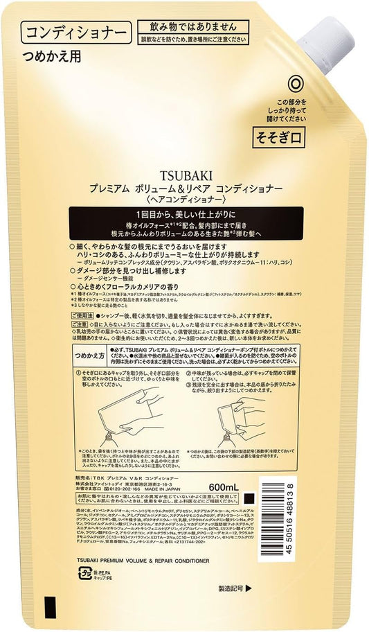 TSUBAKI (츠바키) 컨디셔너 리필 600ml × 3개 세트 - 프리미엄 볼륨 &리페어