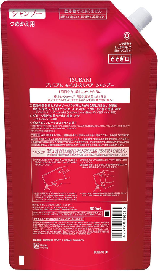 TSUBAKI 샴푸 리필 600ml ×3 + 사은품 [프리미엄 모이스트 &리페어] 윤기 오일 포스 보습, 정돈, 건조, 자외선 케어