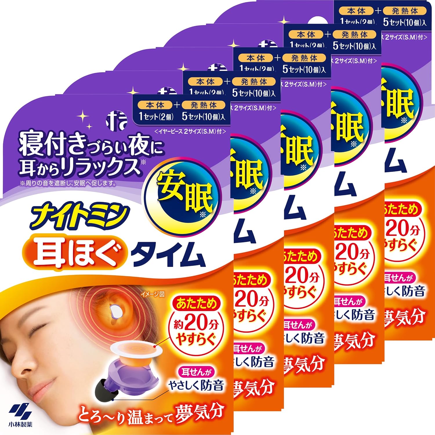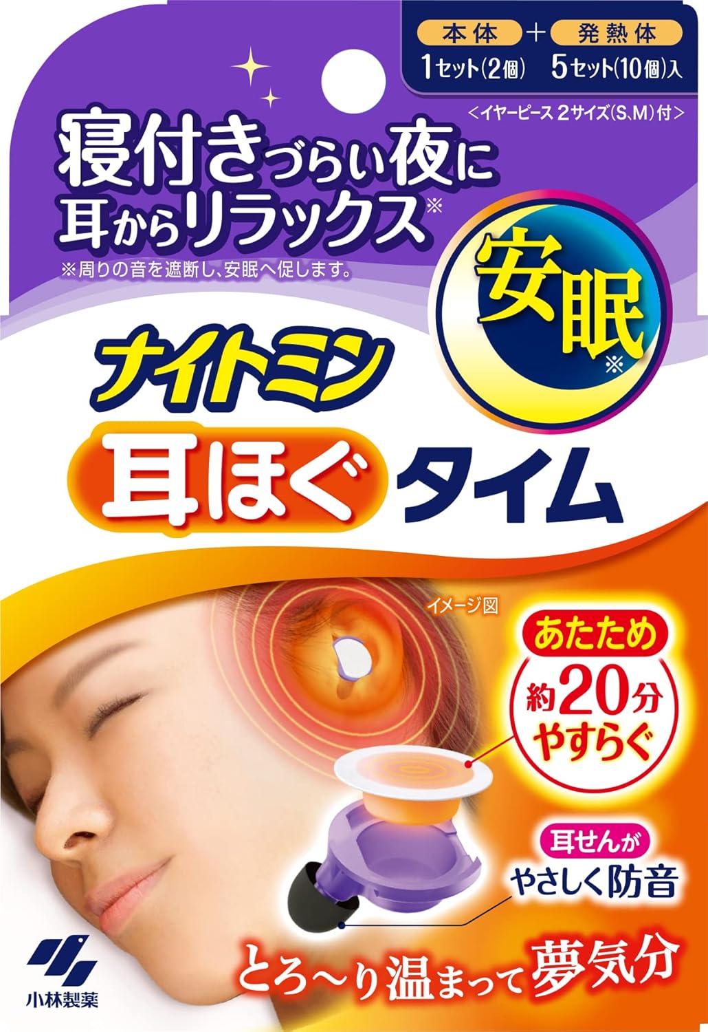 나이트민 귀 마사지 타임 (수면용, 숙면 보조 귀마개, 온열 & 방음 효과, 본체 1세트 + 발열체 5세트, 小林製薬)
