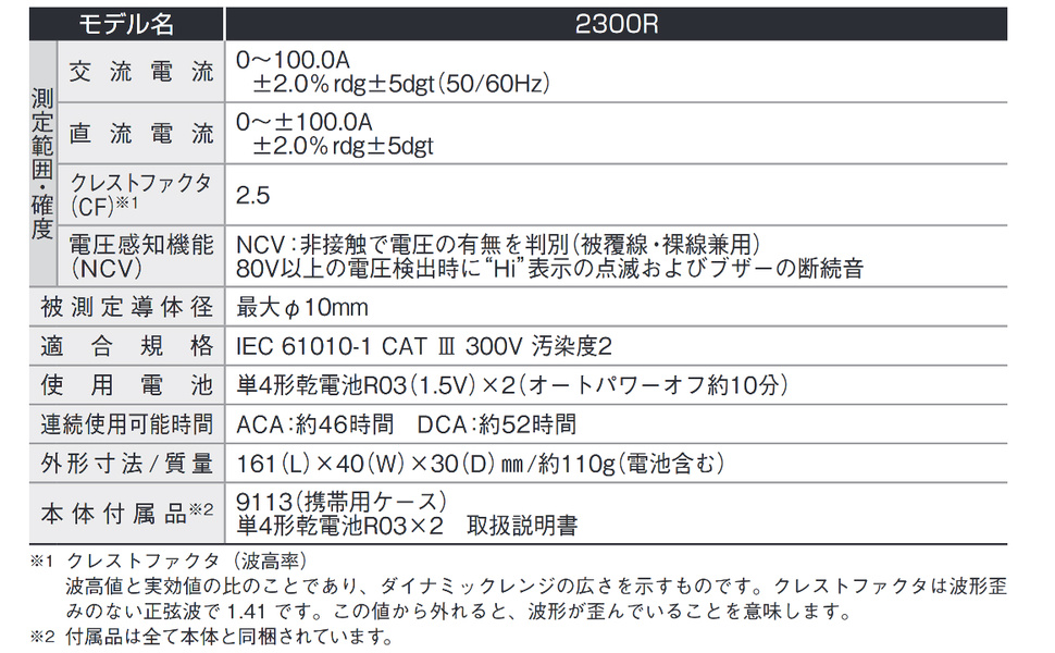교류 전류(AC): 0~100.0A ±2.0%rdg ±5dgt (50/60Hz)