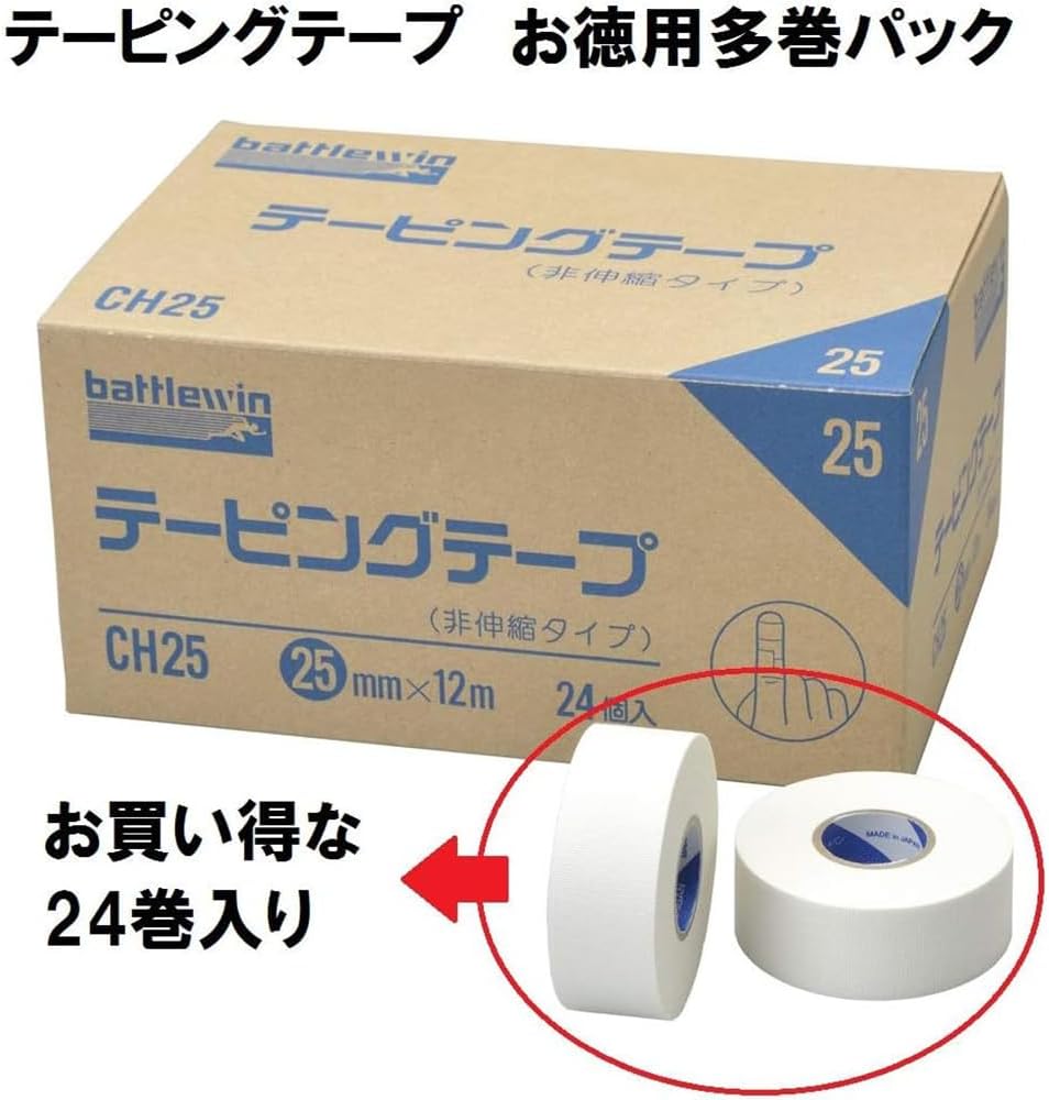 니치반(NICHIBAN) 배틀윈 테이핑 테이프 비신축 타입 25mm × 12m (24개입) CH25 스포츠 테이핑 근육테이프 손가락 손목 무릎 클라이밍