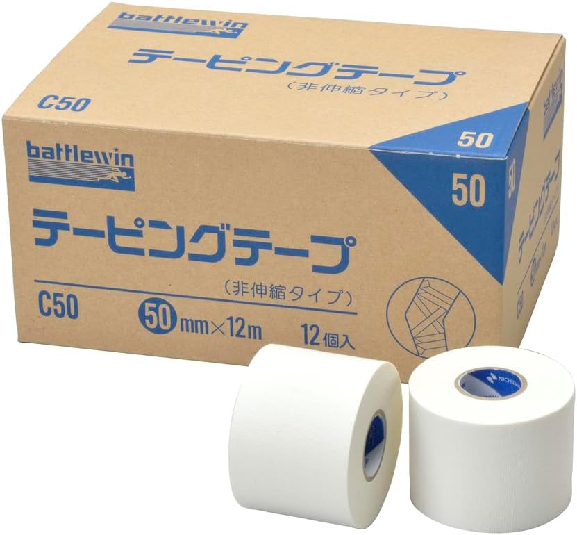 니치반(NICHIBAN) 배틀윈 테이핑 테이프 비신축 타입 스포츠 테이핑 근육테이프 손가락 손목 무릎 클라이밍 50mm × 12m (12개입)