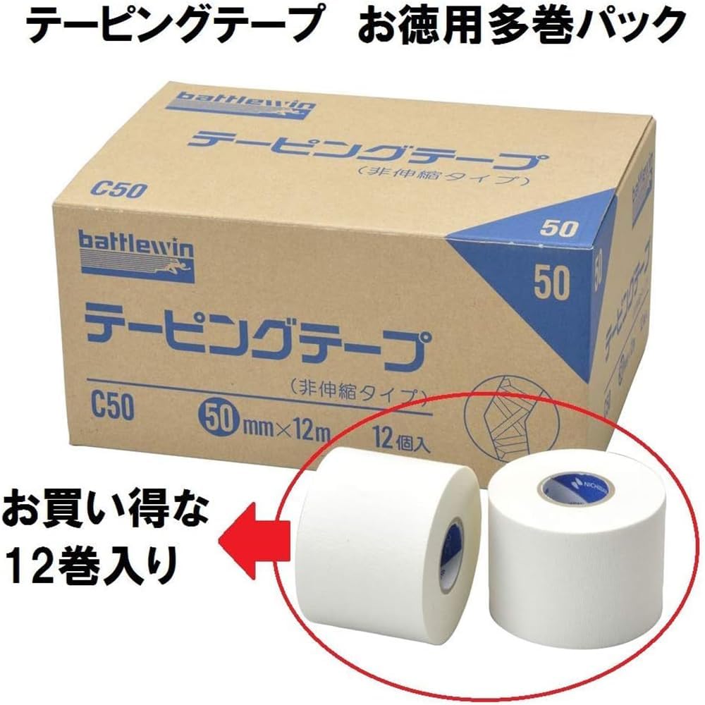 니치반(NICHIBAN) 배틀윈 테이핑 테이프 비신축 타입 50mm × 12m (12개입)